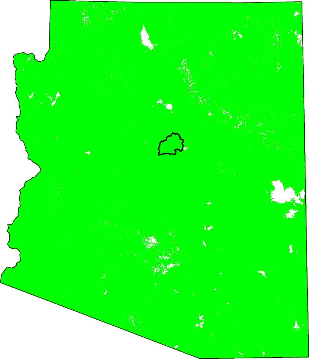 Life Zones: Cliffs in Desertscrub to Pine Areas.